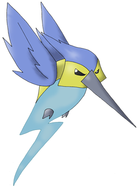 There is so much energy coursing through Klaitning's tiny body that it glows in the dark. It stabs opponents with its needle-like beak and floods them with electricity.